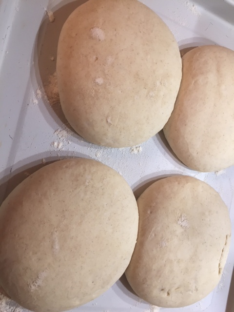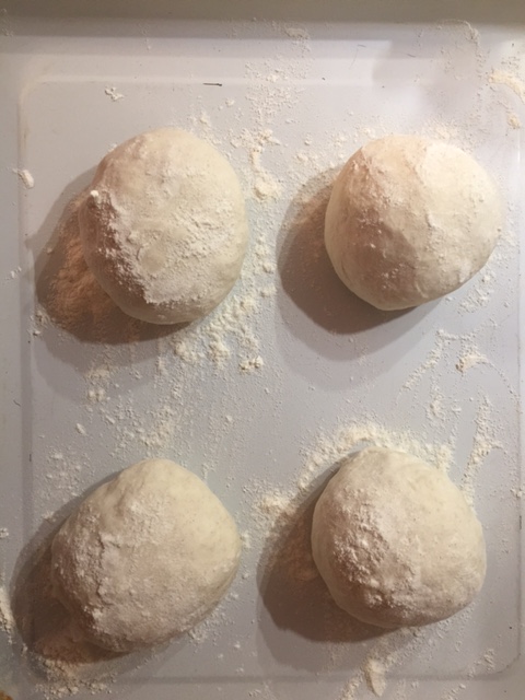 Lasciate riposare l’impasto per una decina di minuti in una ciotola coperta da uno canovaccio, dopodichè suddividere l’impasto in 4 parti uguali di circa 250 gr l’una, e formate delle palline che riporrete in una teglia cosparsa di farina.