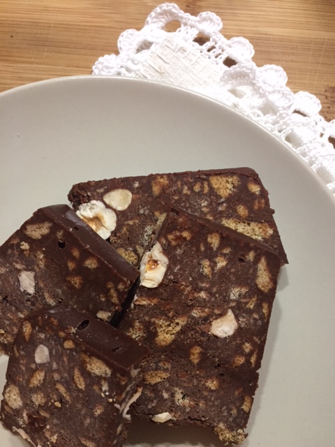 Salame di cioccolata senza uova e senza burro