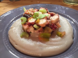 Polipo sedano e pomodoro su crema di patate