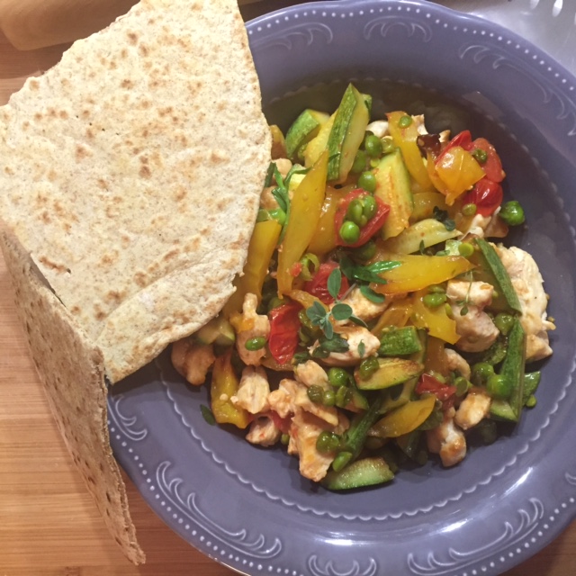 Scaldate su una piastra le vostre piadine e servite il vostro pollo alle verdure. Ogni ospite potrà farcire le piadine a suo piacimento come se fossero piccole fajitas messicane. Sbizzarritevi con salse e contorni!