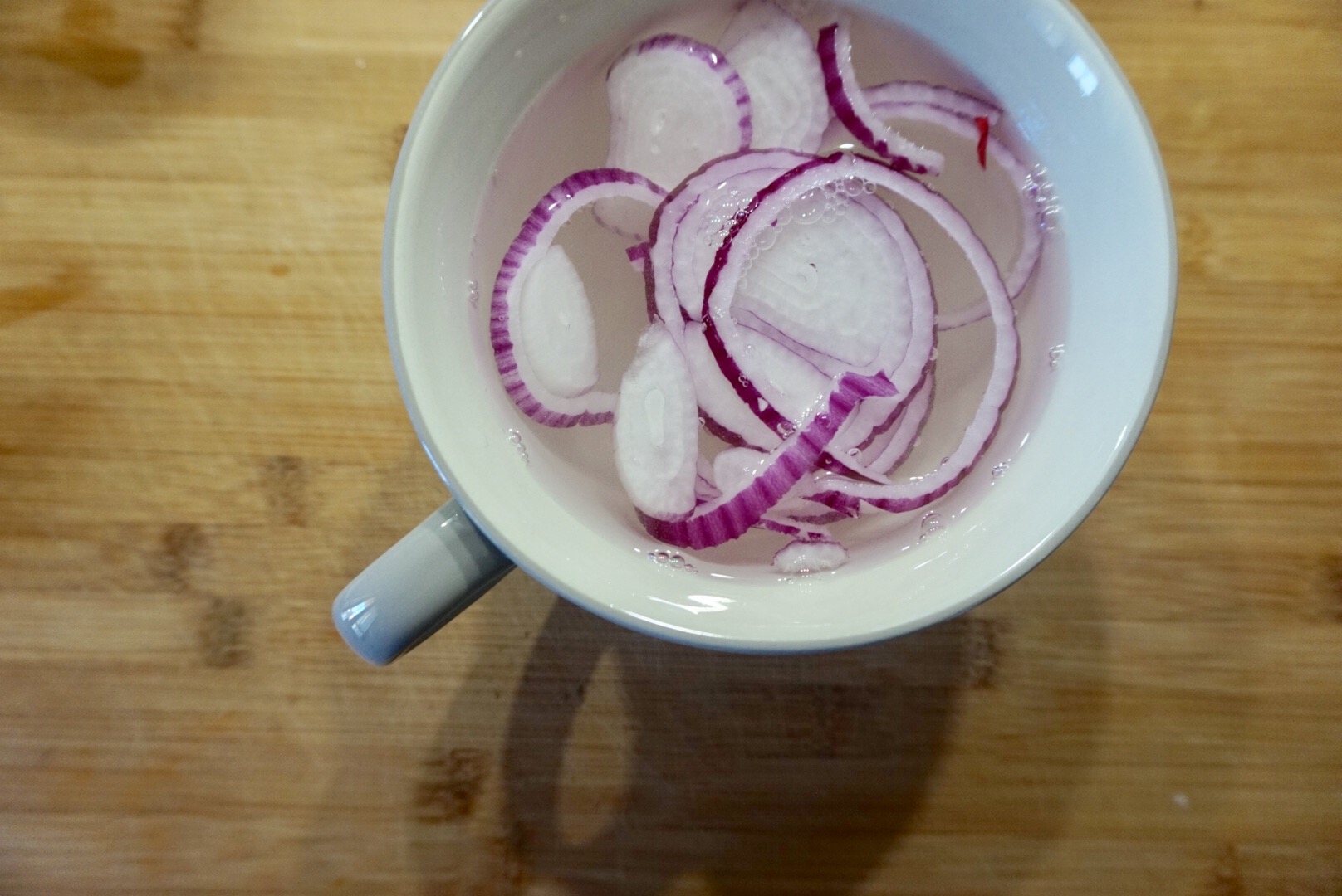 Dadolata di barbabietola e patata croccante con yogurt greco, anelli di cipolla, pinoli tostati e foglie di pane carasau