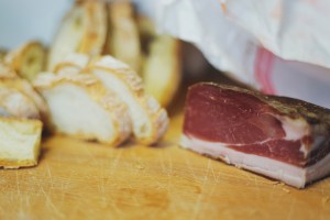 Uovo pochè su crema di zucchine, dadolata di speck e pane croccante