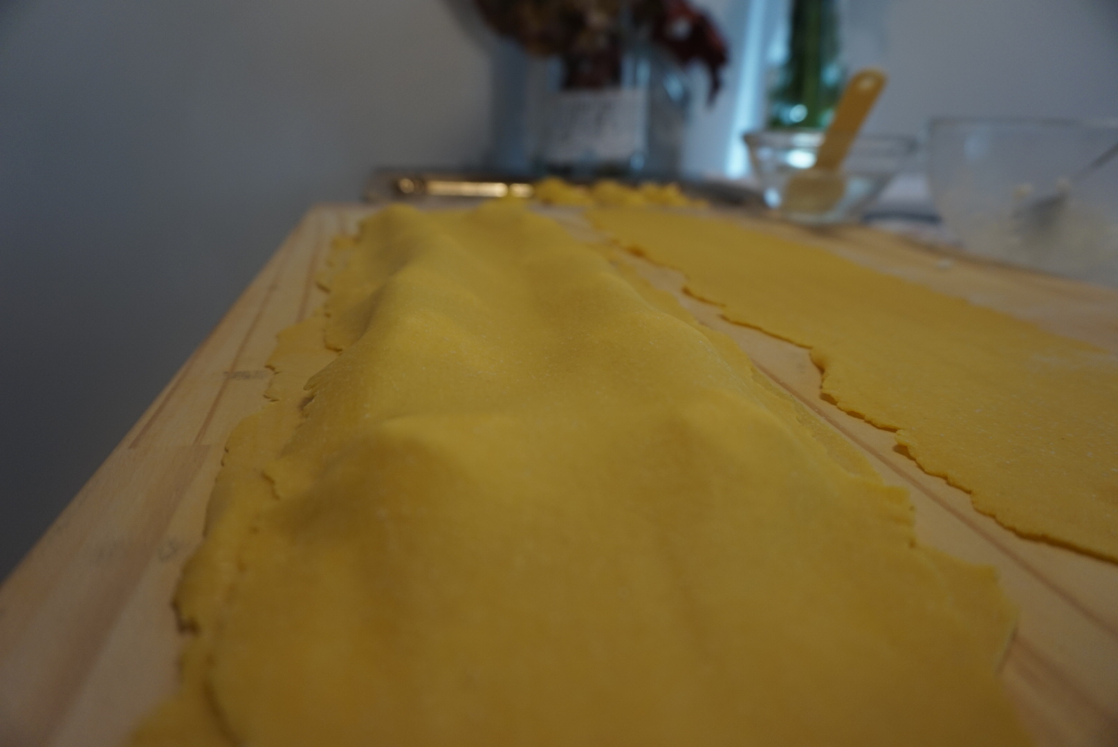 Ravioli di ricotta e scorza di limone allo zafferano e fiori di zucchina