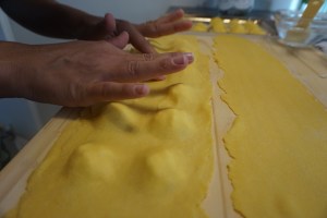 Ravioli di ricotta e scorza di limone allo zafferano e fiori di zucchina