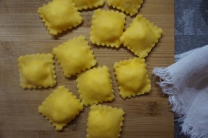 Ravioli di ricotta e scorza di limone allo zafferano e fiori di zucchina