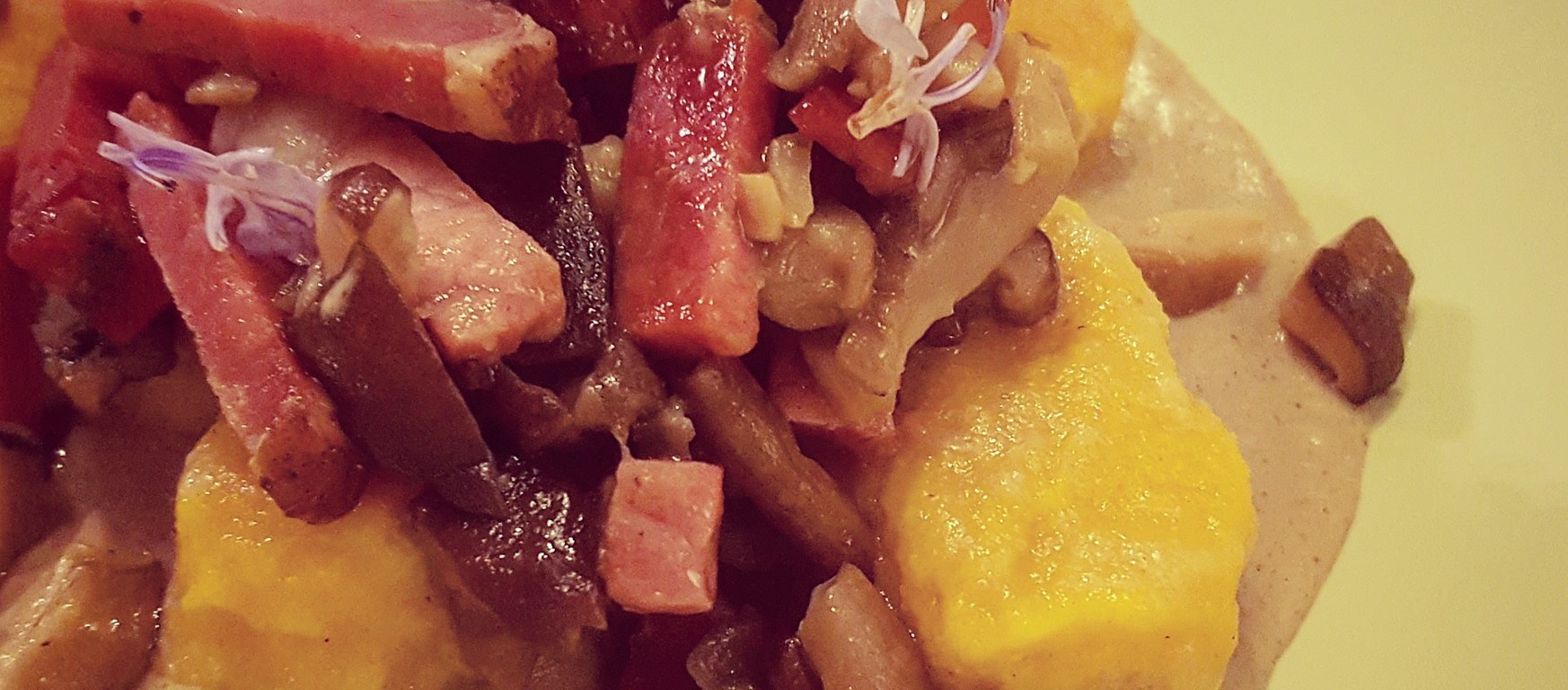 La parte restante dei funghi, tritateli grossolanamente e amalgamateli allo speck precedentemente saltato in padella.