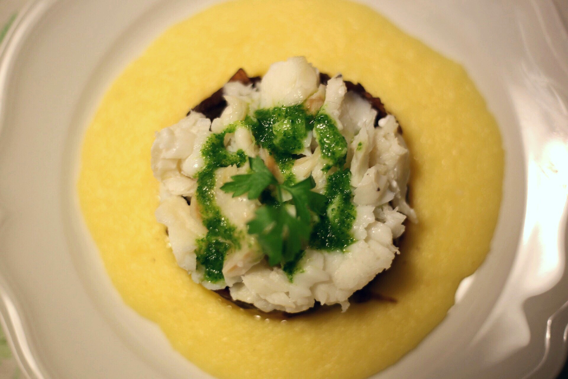 Polenta, cipolla caramellata e baccalà