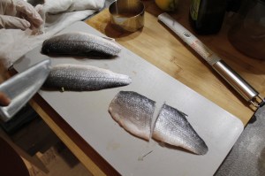 Branzino su dadolata di verdurine croccanti, rapa rossa e aria di capperi