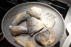 Branzino su dadolata di verdurine croccanti, rapa rossa e aria di capperi