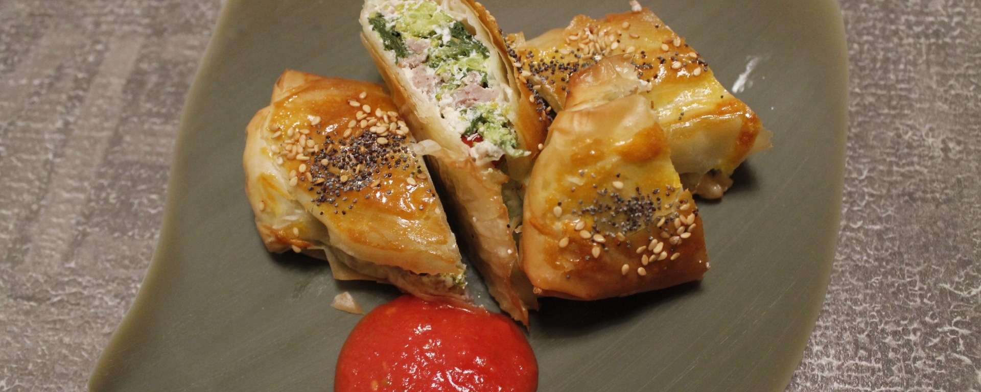 Oggi vi propongo uno strudel salato a base di pasa fillo, ideale per uno sfizioso aperitivo finger food oppure anche per un secondo piatto dell’ultimo minuto. Si può preparare con anticipo perchè è meglio se mangiato da tiepido o freddo. Io ho usato le cime di rapa ma potete benissimo usare anche broccoli o spinaci. Se vi avanza la pasta fillo potete preparare anche questa ottima millefoglie monoporzione.