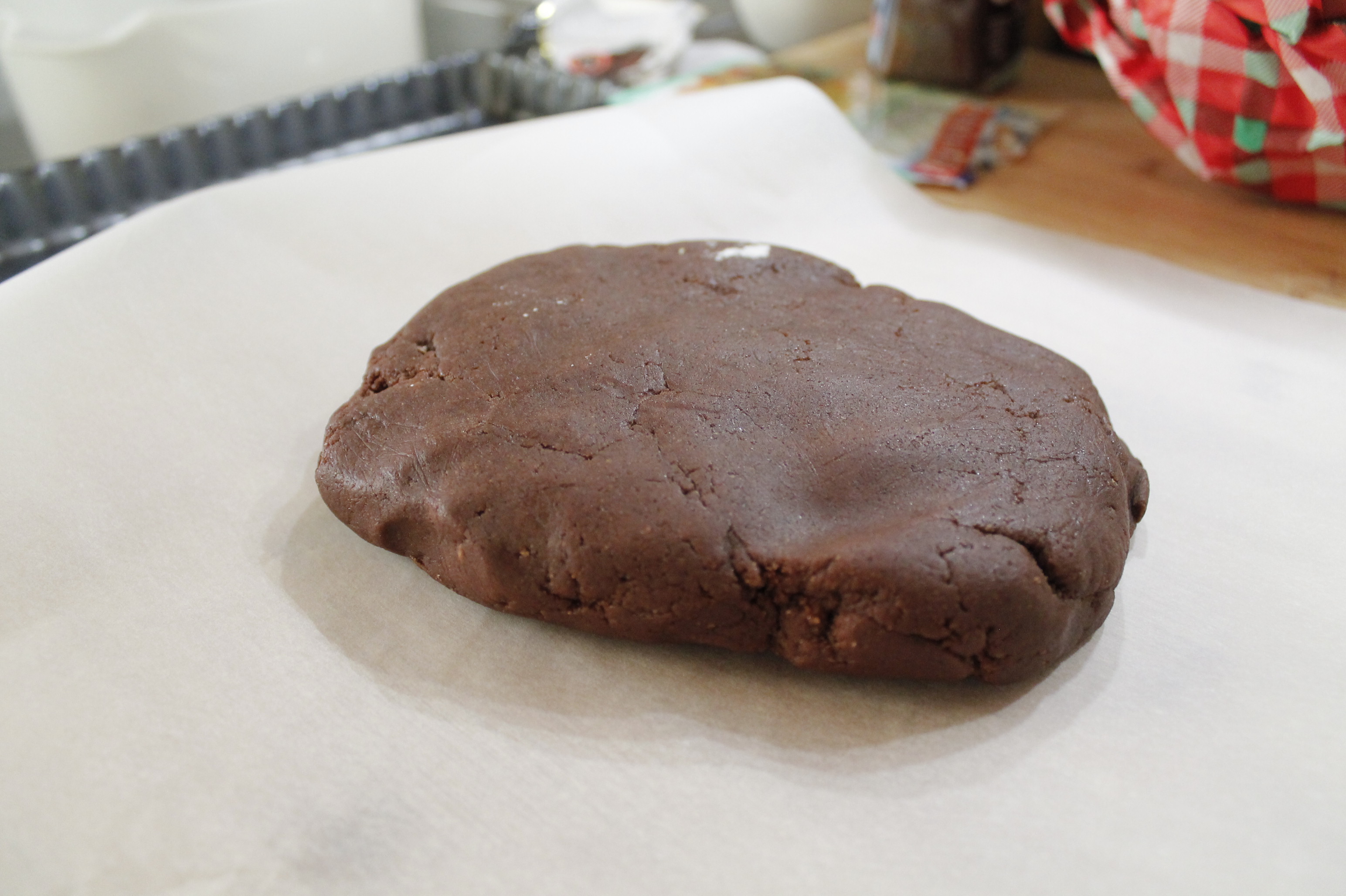 Crostata al cacao con confettura di pere, panna cotta al caffè e scaglie di cioccolato