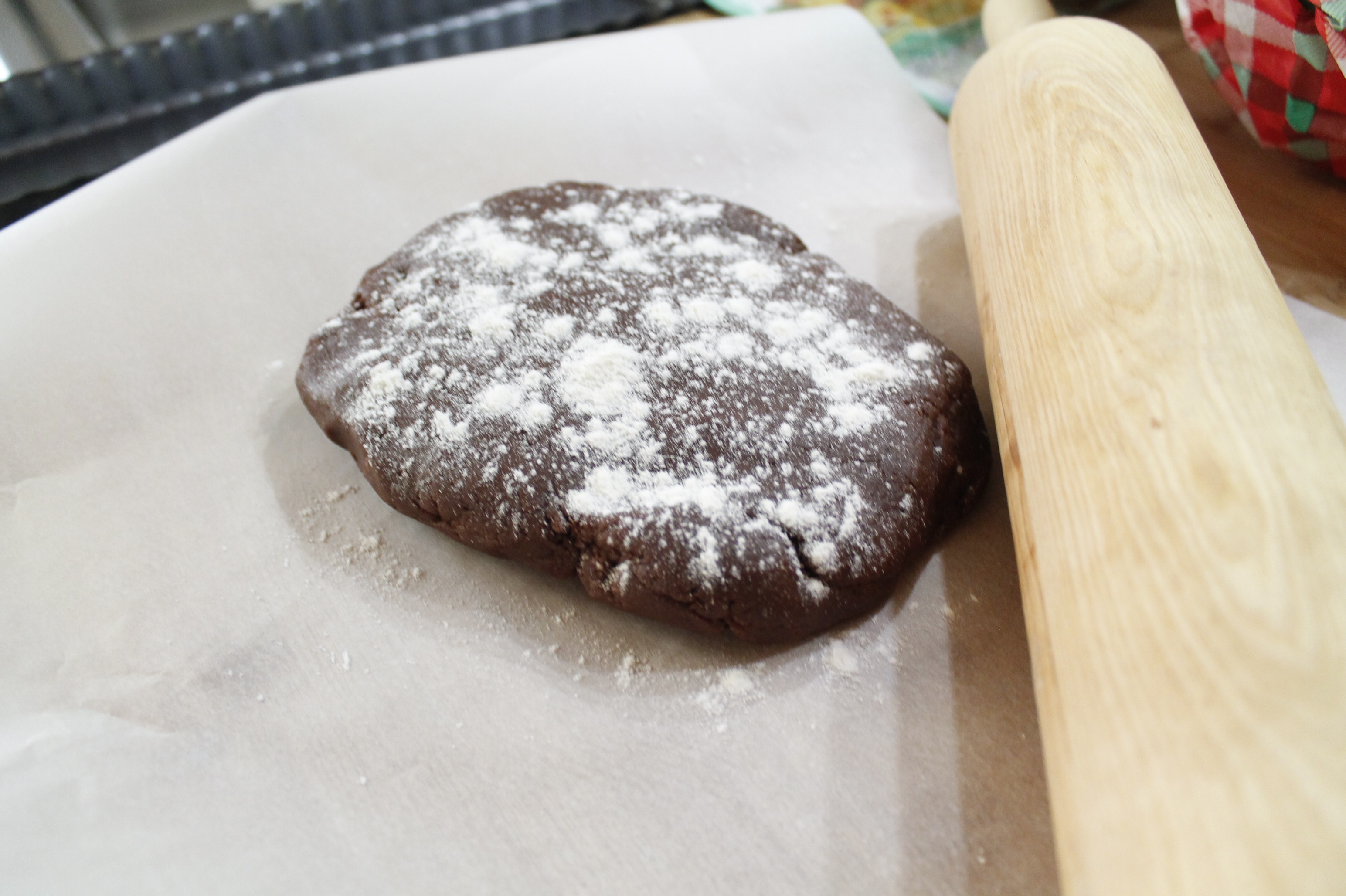 Crostata al cacao con confettura di pere, panna cotta al caffè e scaglie di cioccolato