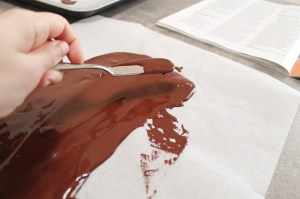 Crostata al cacao con confettura di pere, panna cotta al caffè e scaglie di cioccolato