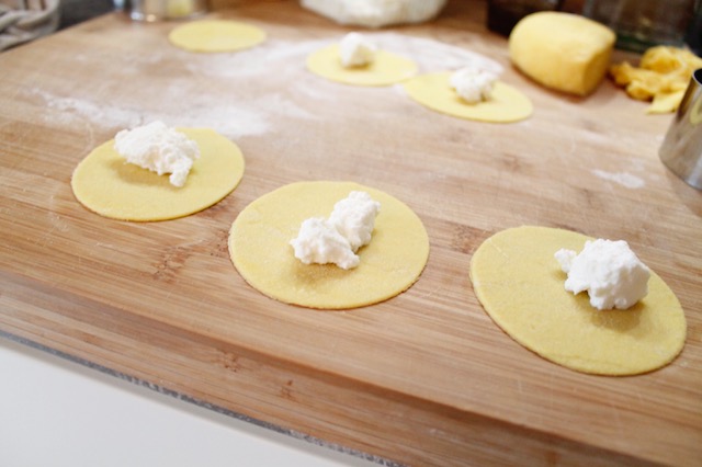 Ravioli di ricotta, asparagi, porro e prosciutto crudo croccante