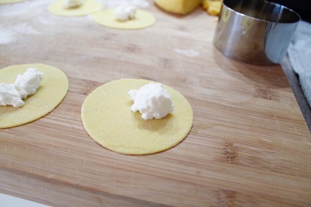 Ravioli di ricotta, asparagi, porro e prosciutto crudo croccante