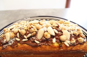 Plumcake allo yogurt ricoperto di cioccolato e frutta secca