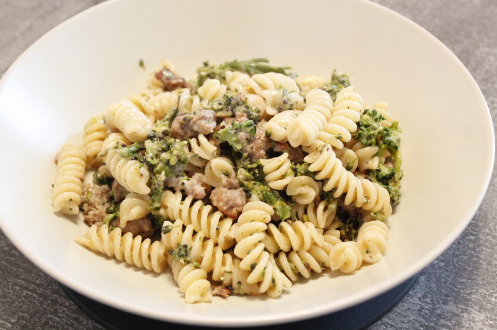 Cuocete la pasta nell’acqua di cottura dei broccoli, scolate e saltate in padella con il condimento, aggiungete un filo di panna liquida per rendere più cremoso il piatto, e mantecate con una spolverata di parmigiano reggiano.