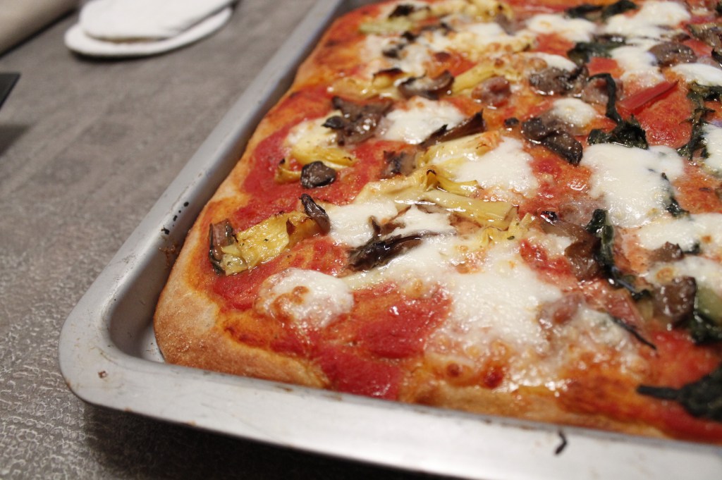 Trascorsa l’ora, trasferite l’impasto sulla teglia ben oliata e stendetelo con le dita senza schiacciare troppo. Nel frattempo preriscaldate il forno in modalità ventilata a massima potenza (circa 250°). Una volta steso l’impasto, fate lievitare la pizza per mezz’ora e condite la come più vi piace, lasciando a parte la mozzarella.