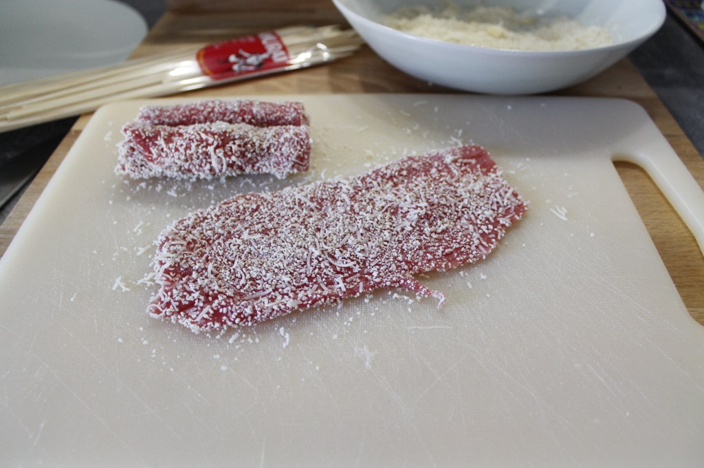 - 15 fettine sottili di manzo (chiedete al macellaio di tagliarle sottili per carpaccio)