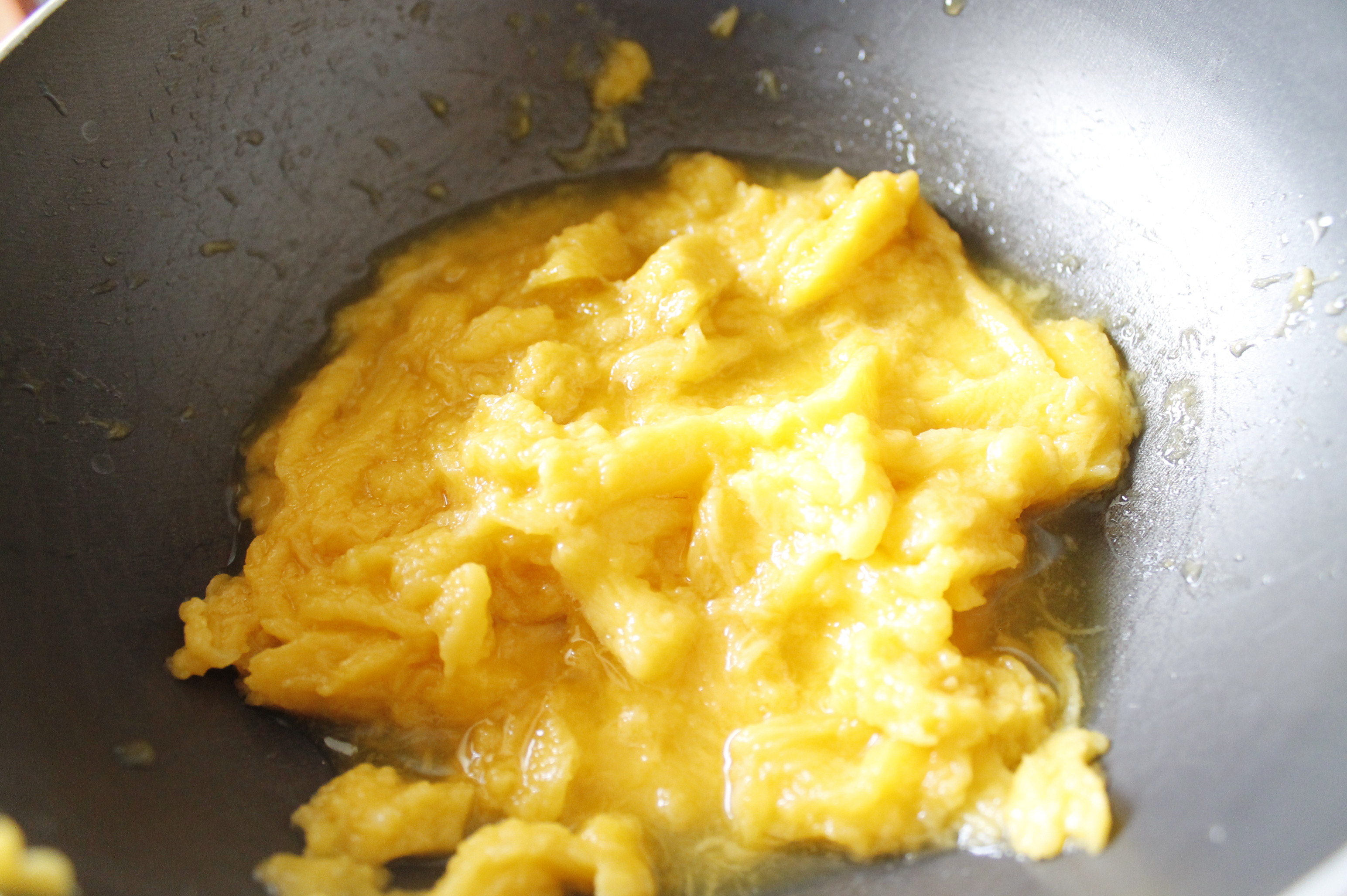 Tagliate il mango (deve essere bello maturo) ed estraetene la polpa. Cuocete la polpa in una piccola padella, aggiungete 2 cucchiai di zucchero e 1 cucchiaino di amido di mais, o fecola di patate rimescolando ogni tanto fino a quando non si sarà un pò addensato (ci vorranno circa 20 minuti). Frullate con il minipimer fino ad ottenere una salsa liscia e lucida e lasciatela raffreddare.