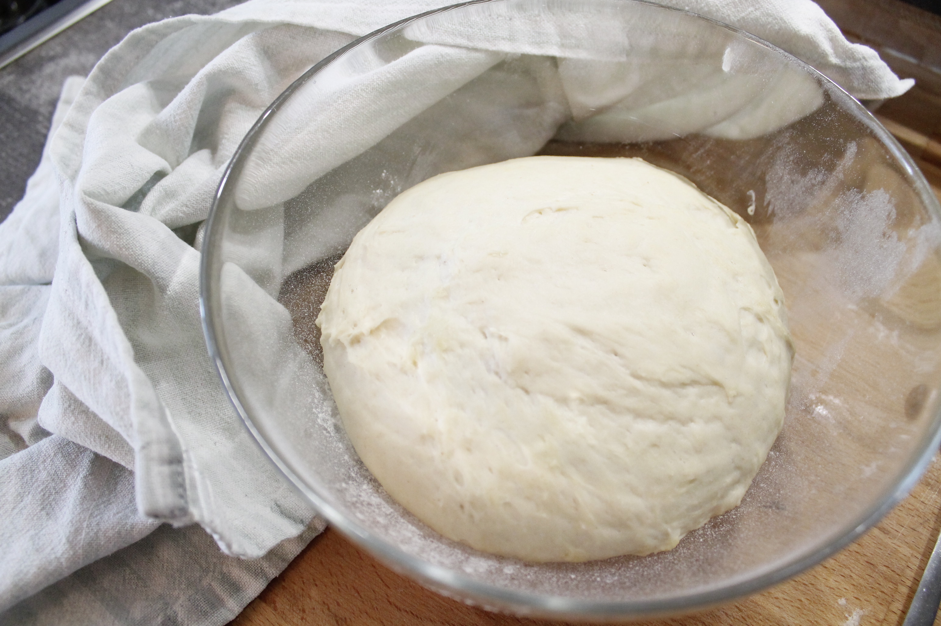 Sciogliete in una ciotola il lievito nell’acqua calda, anche se non si scioglie del tutto va bene, l’acqua non deve mai diventare troppo fredda. Successivamente unite il sale, l’olio e metà del quantitativo di farina precedentemente setacciata. Impastate un pochino e una volta che avrete amalgamato il composto aggiungete la restante farina anch’essa setacciata e impastate fino a quando l’impasto non diventa morbido e liscio. (deve restare un pochino appiccicoso)