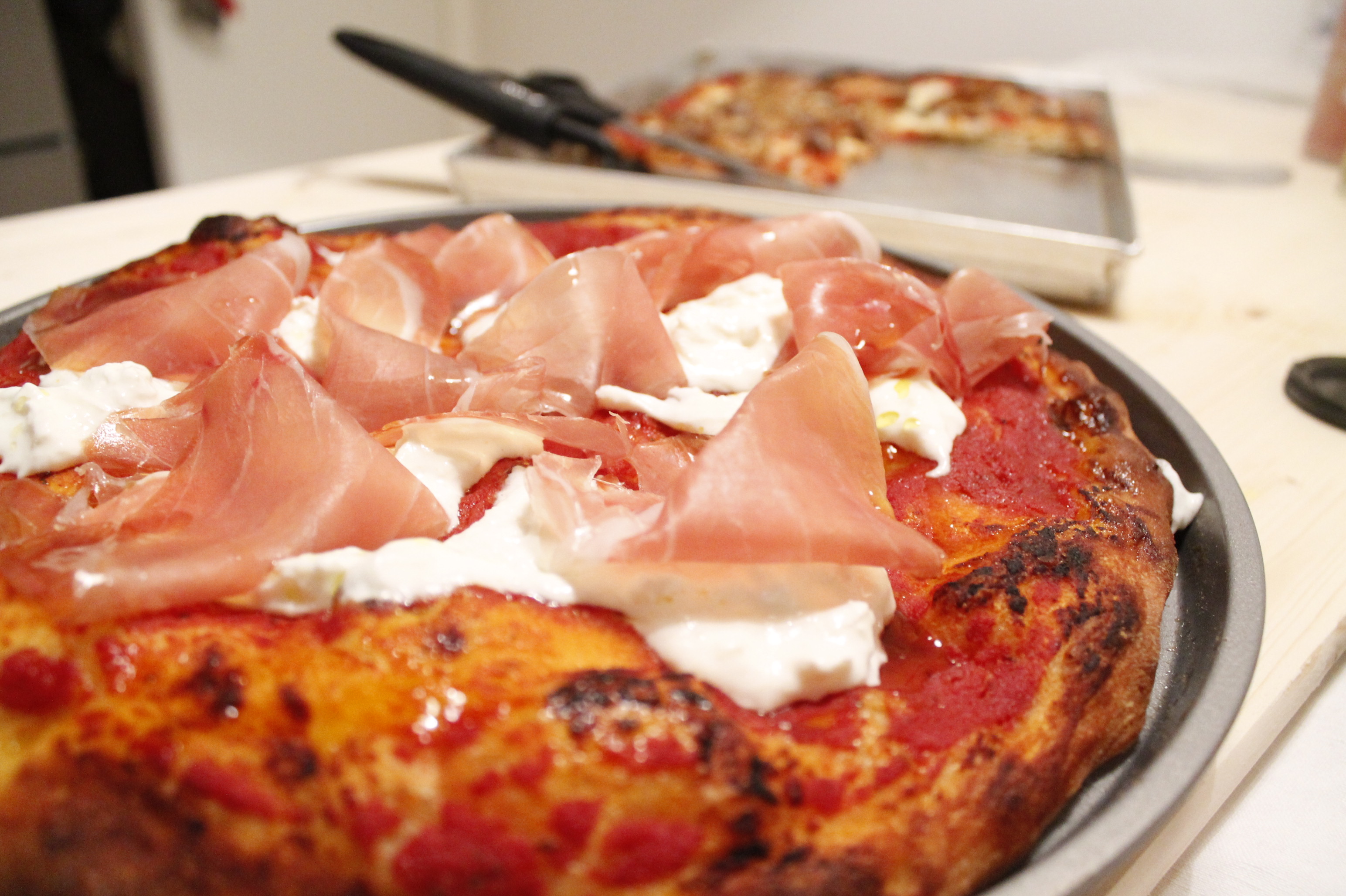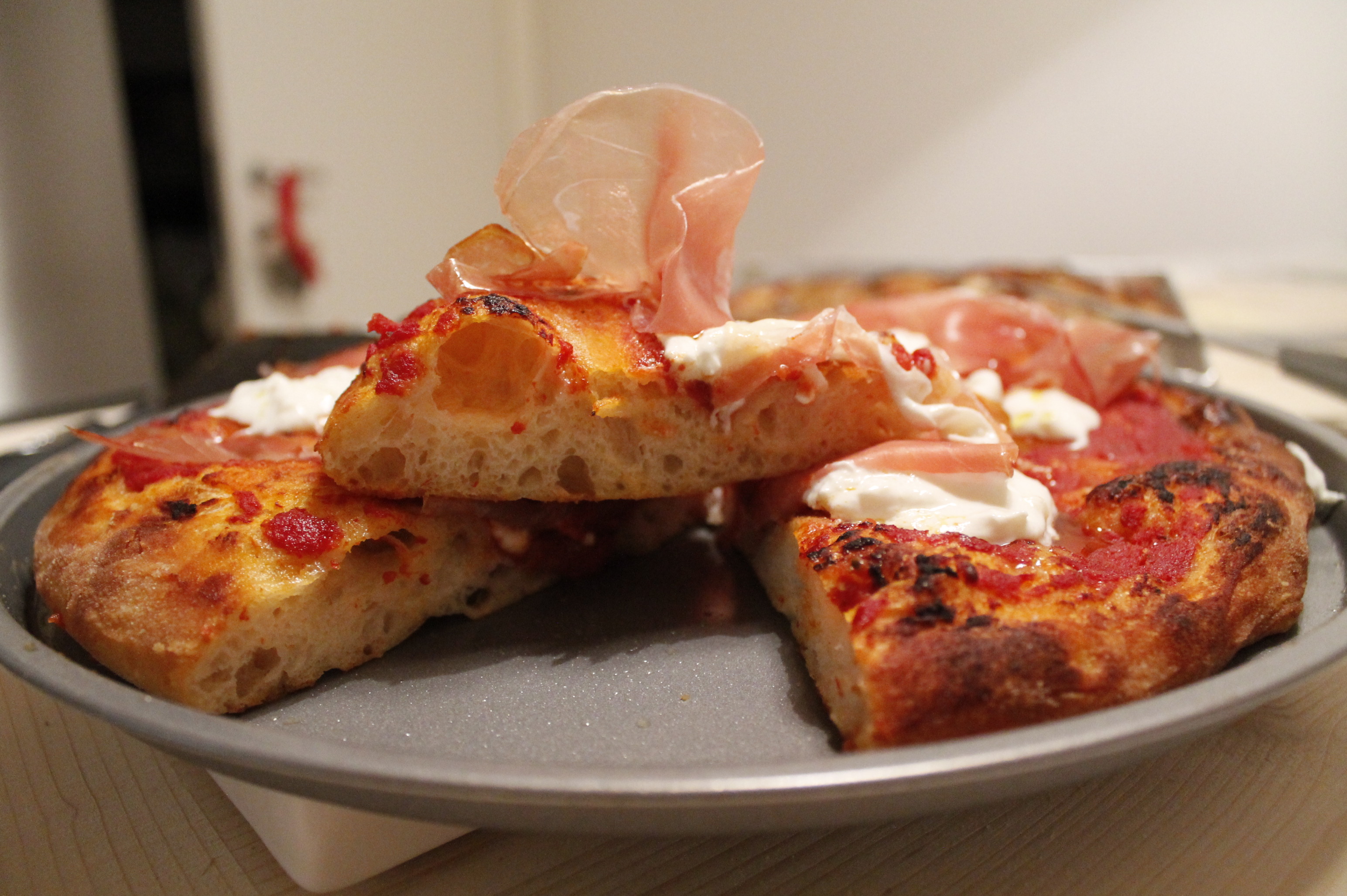 Cuocere la pizza per 10/15 minuti a 220° prima con solo pomodoro e poi farcire con altri ingredienti e cuocere per altri 10 minuti circa.