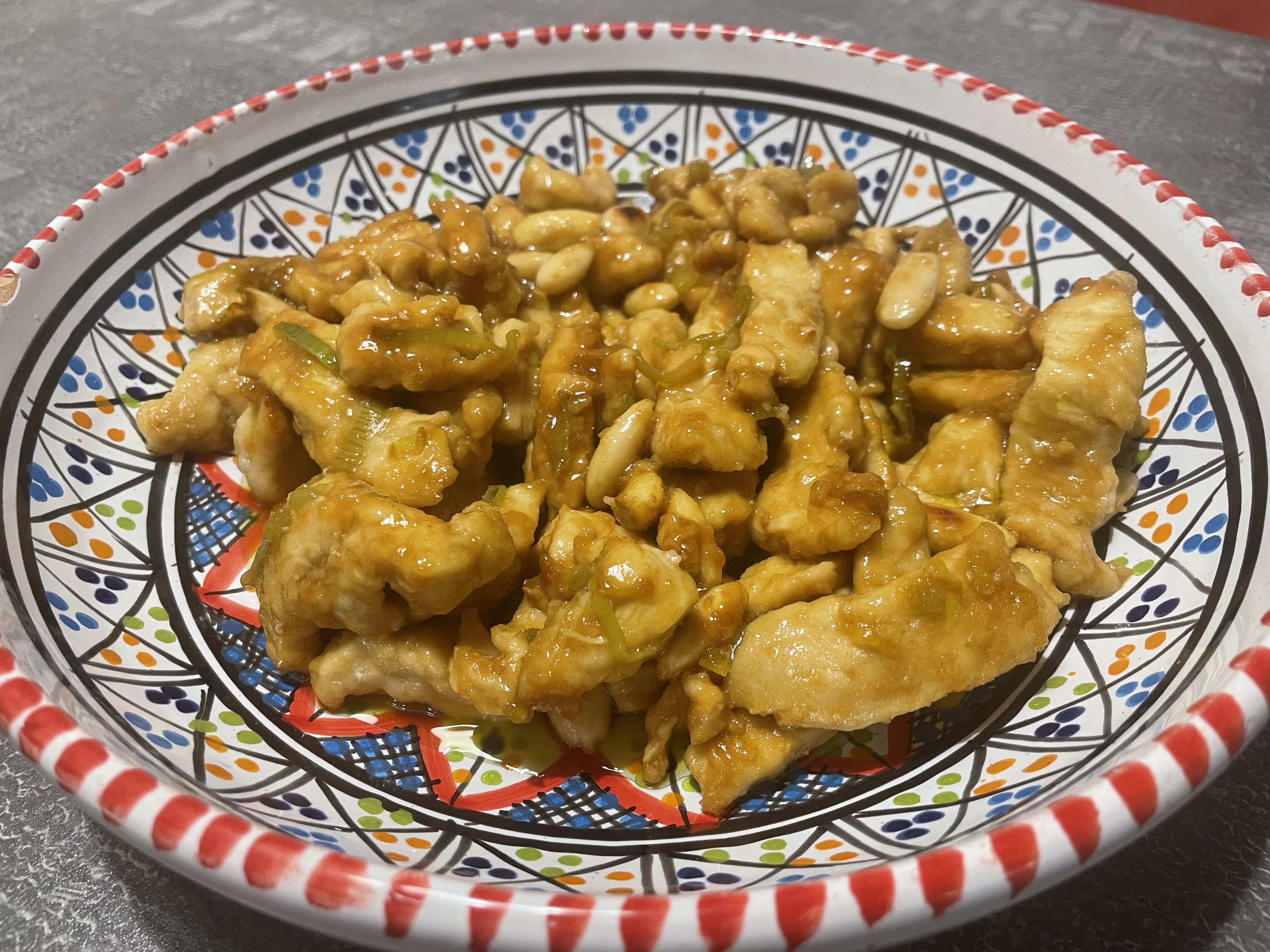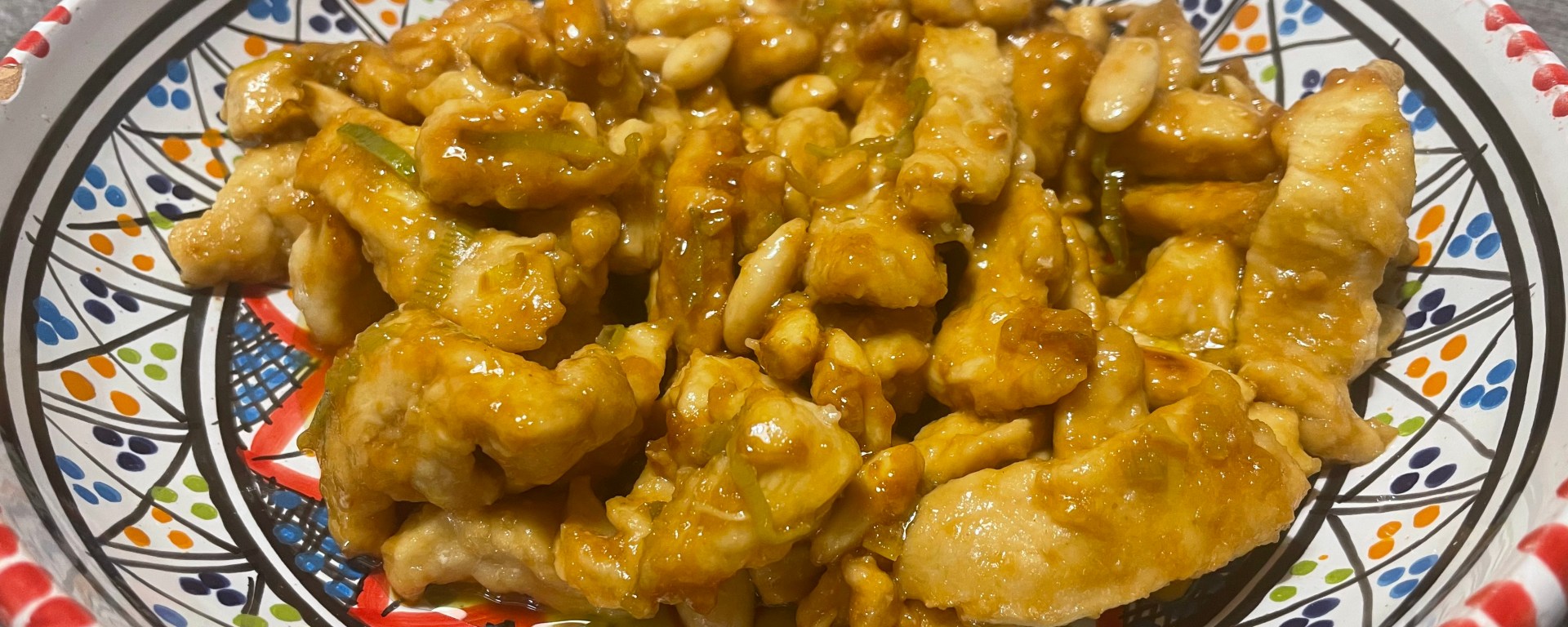 A questo punto aggiungete il pollo infarinato e lasciatelo rosolare. Sfumate con salsa di soia (quanto basta), coprite con un coperchio e lasciate cuocere per qualche minuto fino a quando si sarà addensata la salsina. Ora non vi resta che unire le mandorle precedentemente tostate e buona cena!