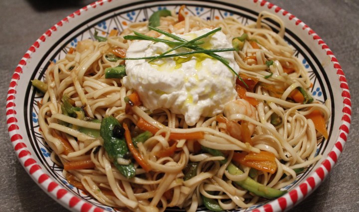 I ristoranti sono chiusi, abito fuori città, i delivery di ristoranti cinesi e giapponesi non arrivano fin qui, e io morivo dalla voglia di mangiare un piatto etnico, ho preparato questi noodles con verdurine croccanti e gamberi. Come tocco finale … Continua a leggere Noodles verdure, gamberi e stracciatella