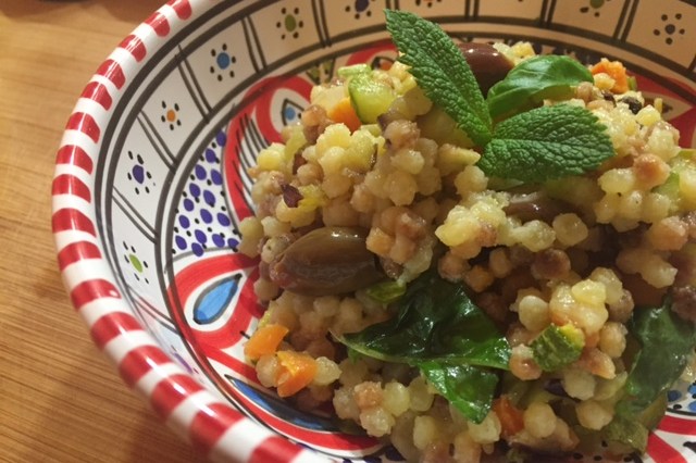 Fregola verdure, capperi e olive taggiasche al profumo di menta e basilico