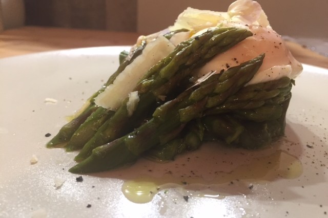 Uovo pochè su dadolata di asparagi