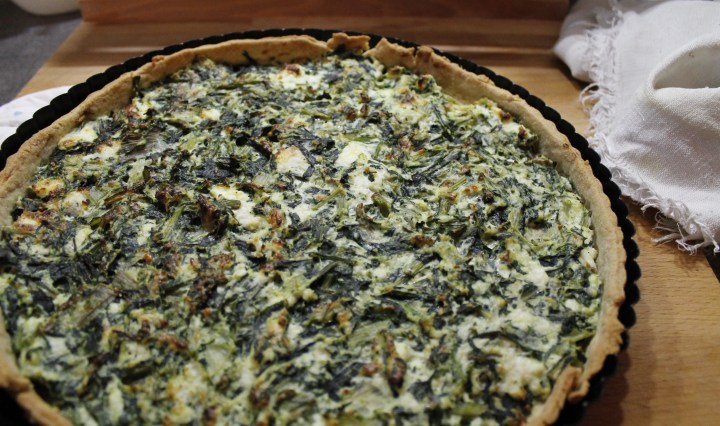 Torta alle erbe e ricotta con pasta al vino